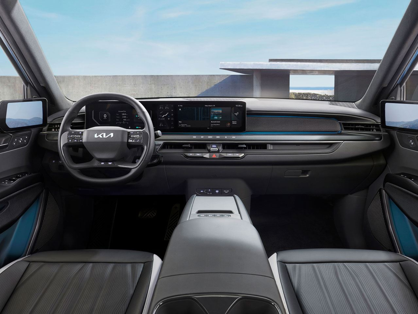 Apoios de braços nas laterais de portas e no console central revestidos em Altaica bio-sintético | ● |